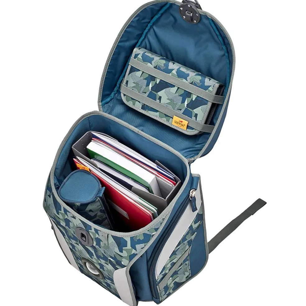 - Geheimfach unter der Front: verdecktes, von der Seite zugängliches Reißverschlussfach – passend fürs Schüleretui.