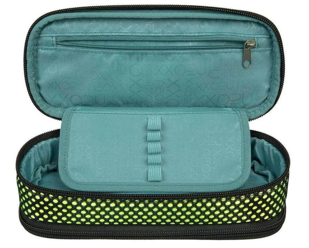 – Oberes Fach: Viel Platz für Stifte, Kleber etc. Durch das Flap mit 5 Stiftelaschen sind die Lieblingsstifte schnell zur Hand. Im Reißverschlussfach können Notizen, Kleingeld oder ähnliches verstaut werden.
