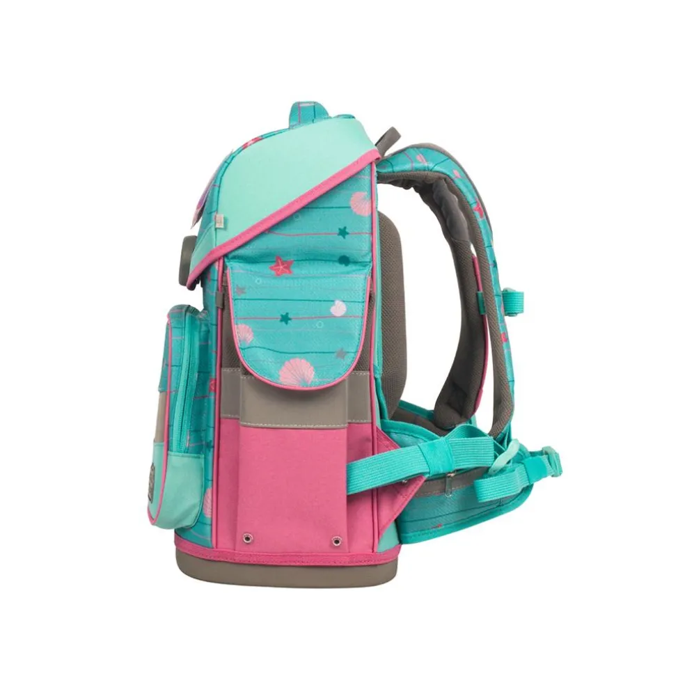 7-teiliges Set mit Ranzen, Turnbeutel, Etui (21-tlg., Markenfüllung von Eberhard Faber), Schlamperrolle, Brustbeutel, Brotdose und Patchy-Set (3-tlg.)