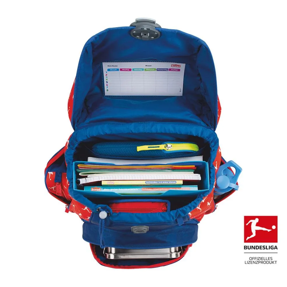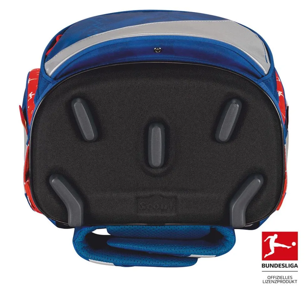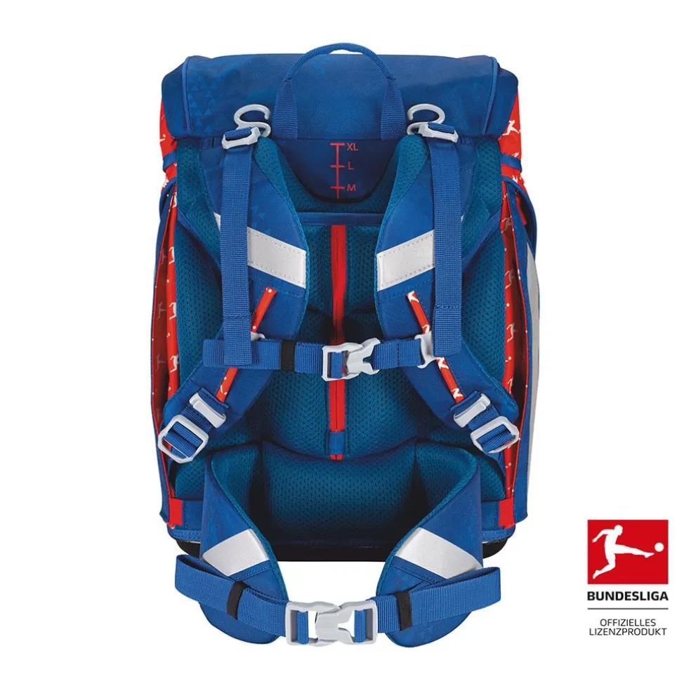 Unsere BUNDESLIGA-Edition bringt das Stadiongefühl direkt ins Klassenzimmer und lässt jedes Fußballherz höherschlagen. Der softe Alpha ist geräumig, sitzt ergonomisch und sorgt mit retroreflektierenden Flächen für gute Sichtbarkeit. Das Beste aber: Sportbeutel, Federmäppchen mit Staedtler Qualitätsbuntstiften, Schlamperetui, 2 sportliche Funny Snaps Move und 1 DERBYSTAR Miniball sind inklusive.