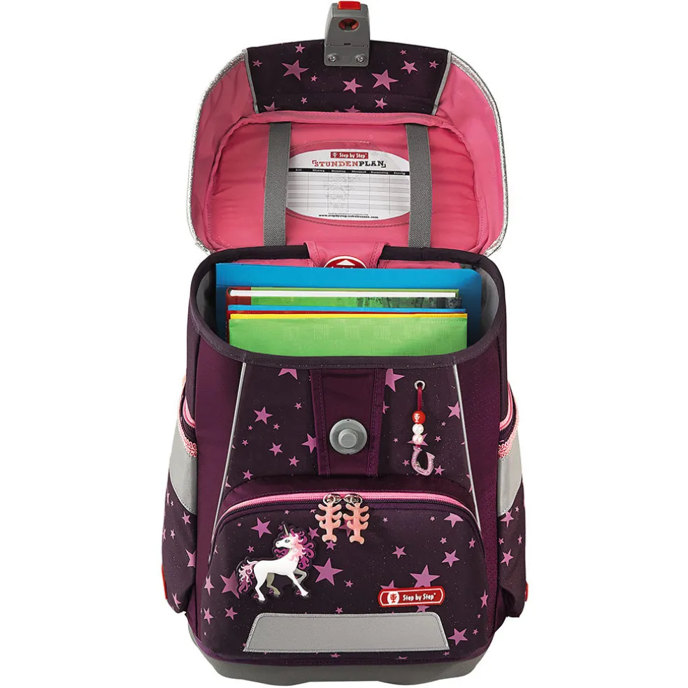 – durch Fidlock-Magnetverschluss kinderleichtes Öffnen und selbstständiges Schließen des Schulranzens
