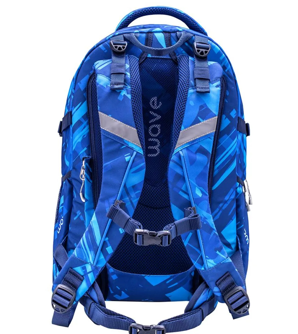 Wave Infinity wiegt nur ca. 1000 g und bietet genügend Platz für all deine Schulutensilien. Im inneren befinden sich zwei große Hauptfächer. Eines der großen Hauptfächer bietet ein gepolstertes Einsteckfach für den Laptop (15,6″) oder das Tablet (10″), zusätzlich findest du hier eine kleine Reißverschlusstasche und 2 elastische Taschen. Am vorderen oberen Bereich des Rucksackes gibt es ein „Brillenfach“. Die Riemen an der vorderen Seite des Rucksackes bieten dir die Möglichkeit deine Jacke oder dein Skateboard zu befestigen.