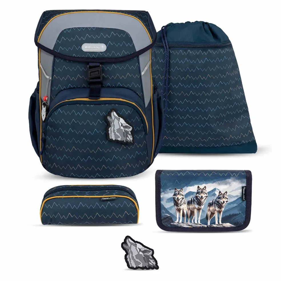 – Ergonomisches Schulranzen-Set 5-teilig mit Brustgurt für die Grundschule 1. – 3. Klasse