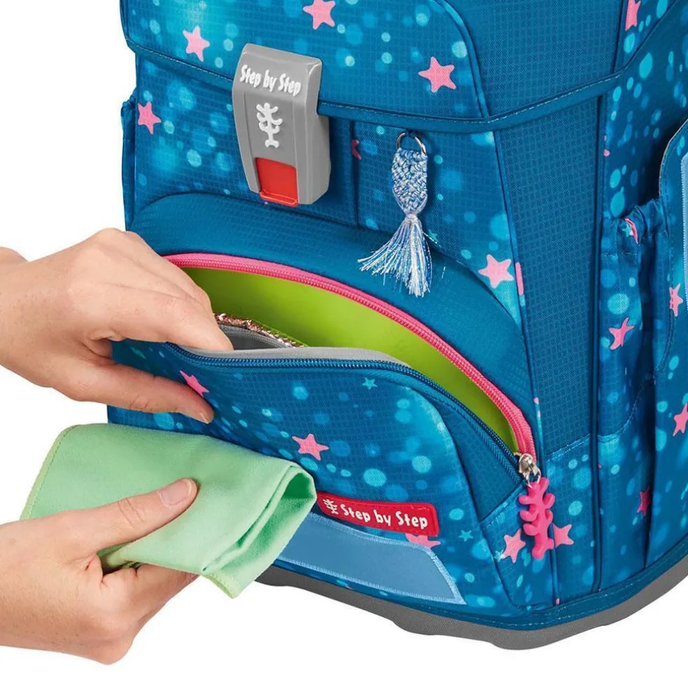 Die Bestandteile des MAGIC MAGS-Zubehörs lassen sich beliebig oft von den entsprechenden Flächen des Schulranzens abnehmen und durch andere MAGIC MAGS ersetzen. Diese sind in 3er-Sets separat erhältlich. Für eine neutrale Gestaltung des Ranzens können die MAGIC MAGS einfach komplett weglassen werden, ohne dass störende Klettflächen entstehen. So wird jeder Schulranzen zum Unikat.