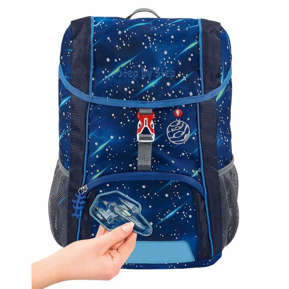 Die Bestandteile des Magic Mags-Zubehörs lassen sich beliebig oft von der entsprechenden Fläche des Rucksacks abnehmen und durch andere Magic Mags ersetzen. Diese sind in 3er-Sets separat erhältlich. Für eine neutrale Gestaltung des Rucksacks können Sie den Magic Mags einfach komplett weglassen, ohne dass eine auffällig leere Stelle entsteht, wie es bei üblichen Klett-Applikationen der Fall wäre. So wird jeder Schulranzen zum Unikat.