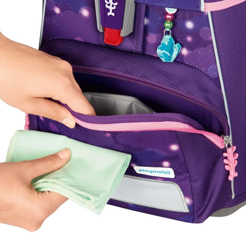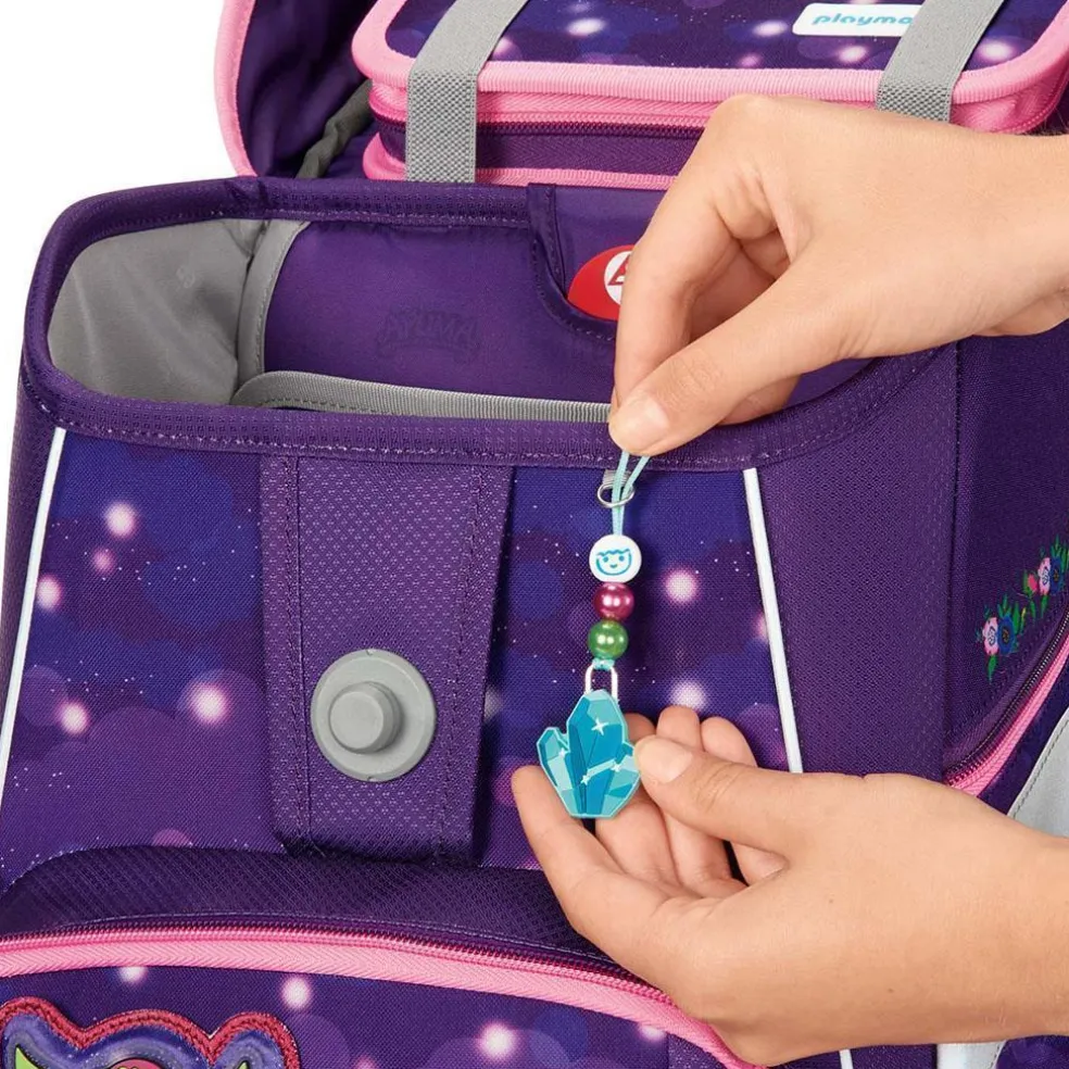 Die Bestandteile des Magic Mags-Zubehörs lassen sich beliebig oft von den entsprechenden Flächen des Rucksacks abnehmen und durch andere Magic Mags ersetzen. Diese sind in 3er-Sets separat erhältlich. Für eine neutrale Gestaltung des Ranzens können Sie die Magic Mags einfach komplett weglassen, ohne dass auffällig leere Stellen entstehen, wie es bei üblichen Klett-Applikationen der Fall wäre. So wird jeder Schulranzen zum Unikat.