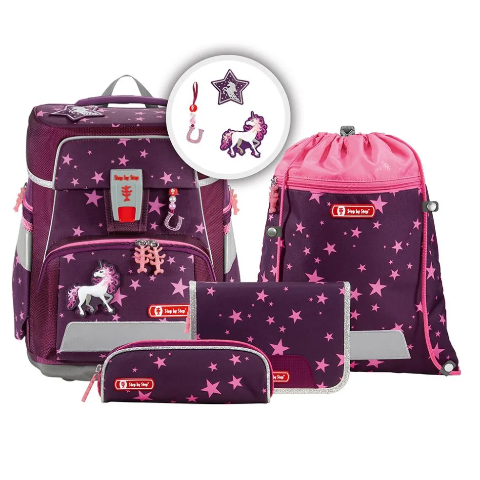 Die Bestandteile des Magic Mags-Zubehörs lassen sich beliebig oft von den entsprechenden Flächen des Rucksacks abnehmen und durch andere Magic Mags für die SPACE Schulranzen-Serie ersetzen. Diese sind in 3er-Sets separat erhältlich. Für eine neutrale Gestaltung des Ranzens können Sie die Magic Mags einfach komplett weglassen, ohne dass auffällig leere Stellen entstehen, wie es bei üblichen Klett-Applikationen der Fall wäre. So wird jeder Schulranzen zum Unikat.